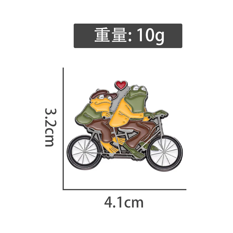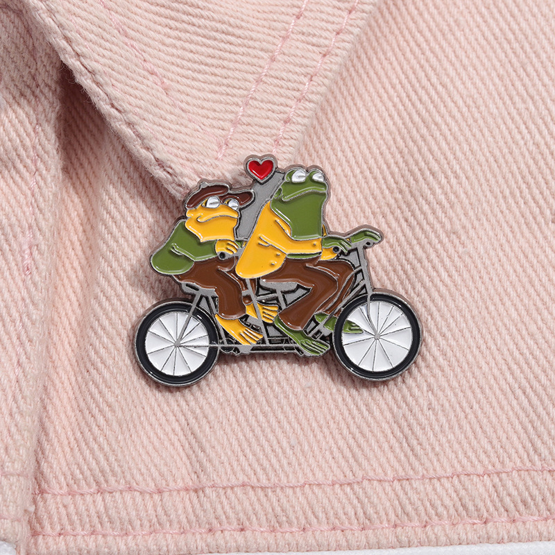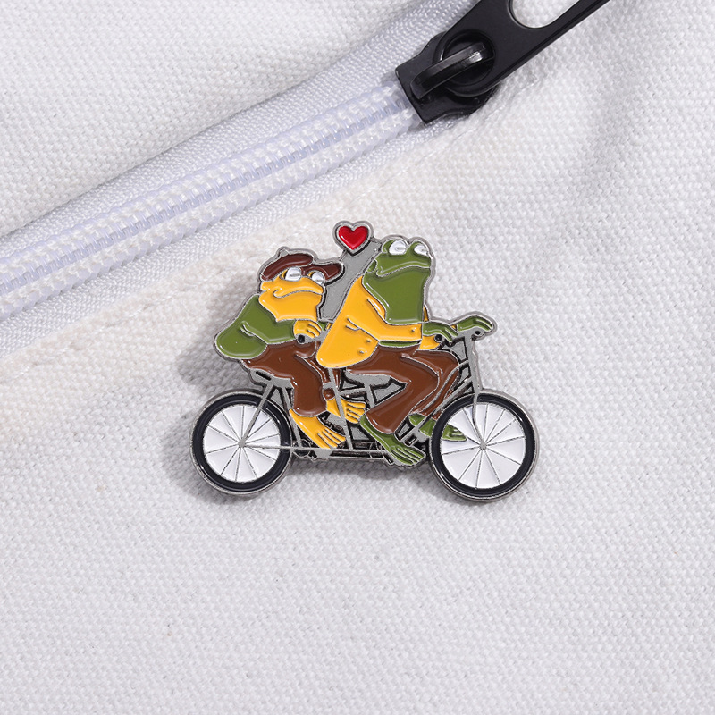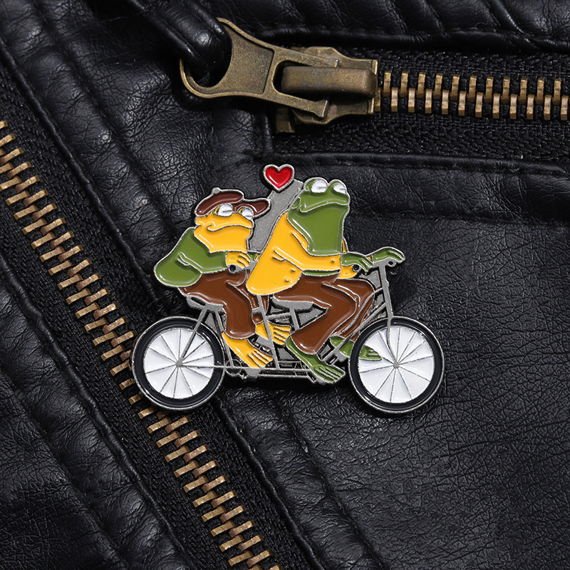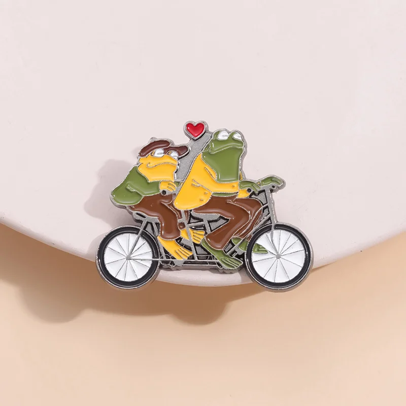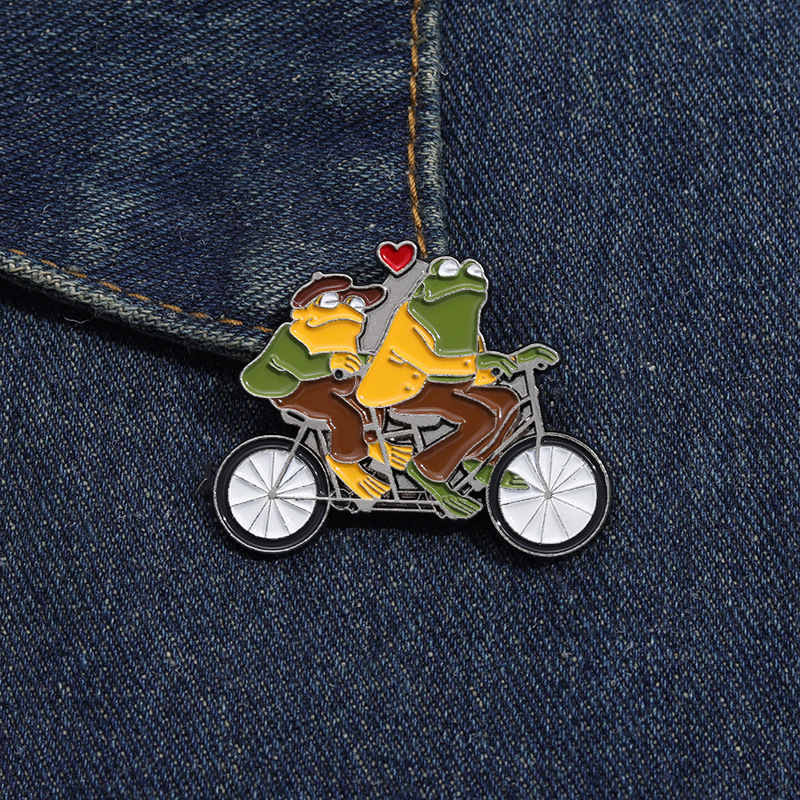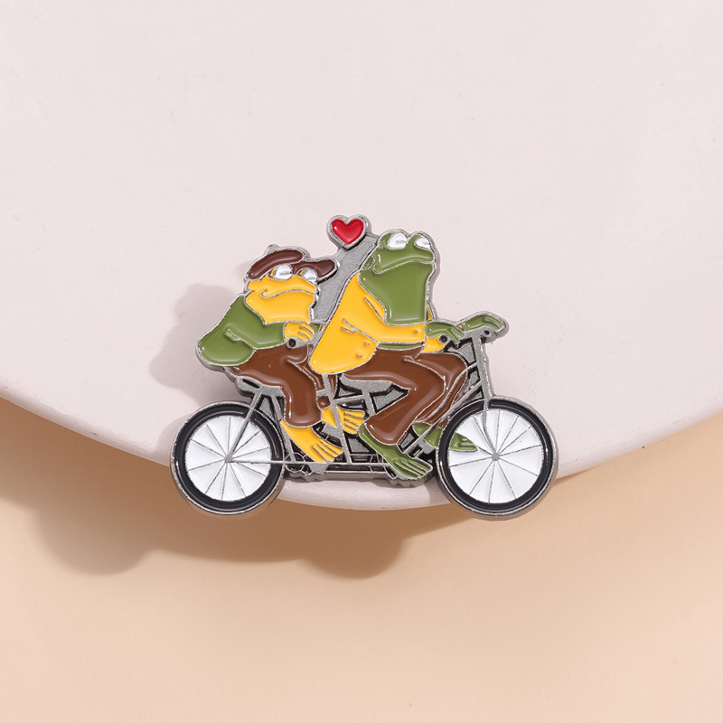 Funny Animal Frog Riding Bicycle Enamel Brooch Metal Brooch Creation Brothers Double Fun Corsage Badge Clothing Accessories