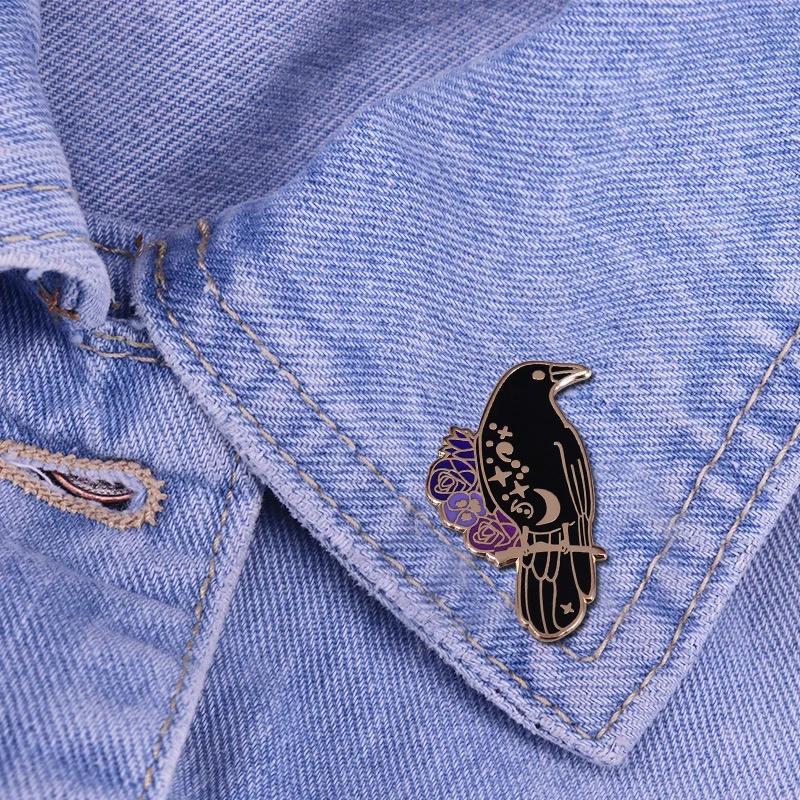 Gothic Floral Crow Brooch Six Crows Literature Inspiration Badges Funny Animal Accessories