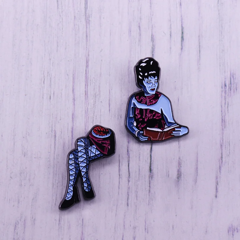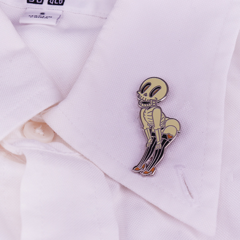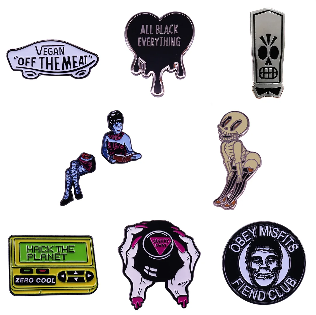 High Quality Copper Gothic Punk Style Lover Enamel Brooch Lapel Backpack Hat Badge Skeleton Rock Band Horror Movie Fan Gift