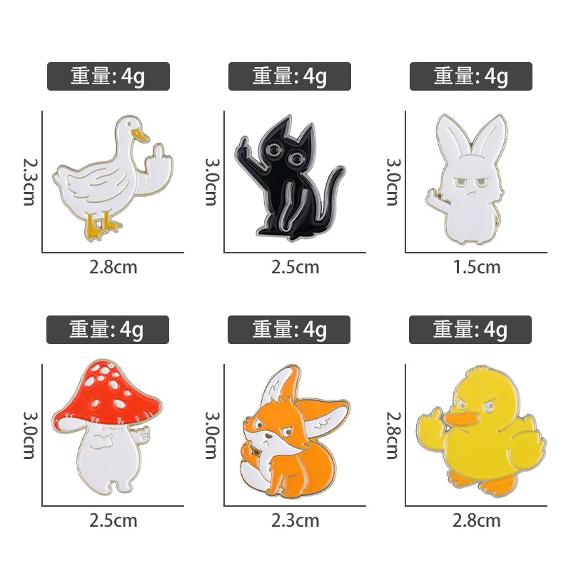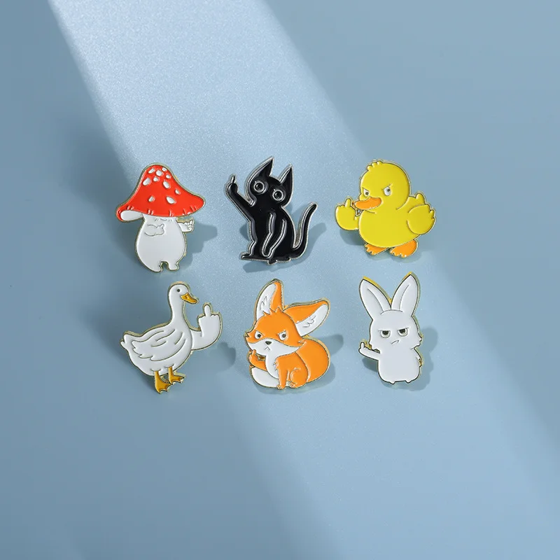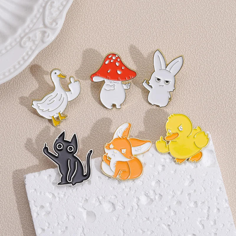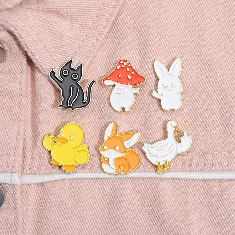 Middle Finger Animal Enamel Pin Badge Plant Mushroom Fox Kitten Rabbit Goose Chicken Bag Ornament Brooch