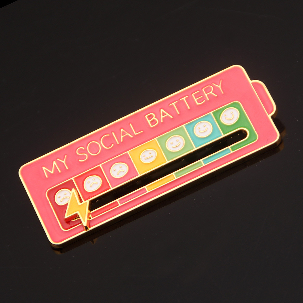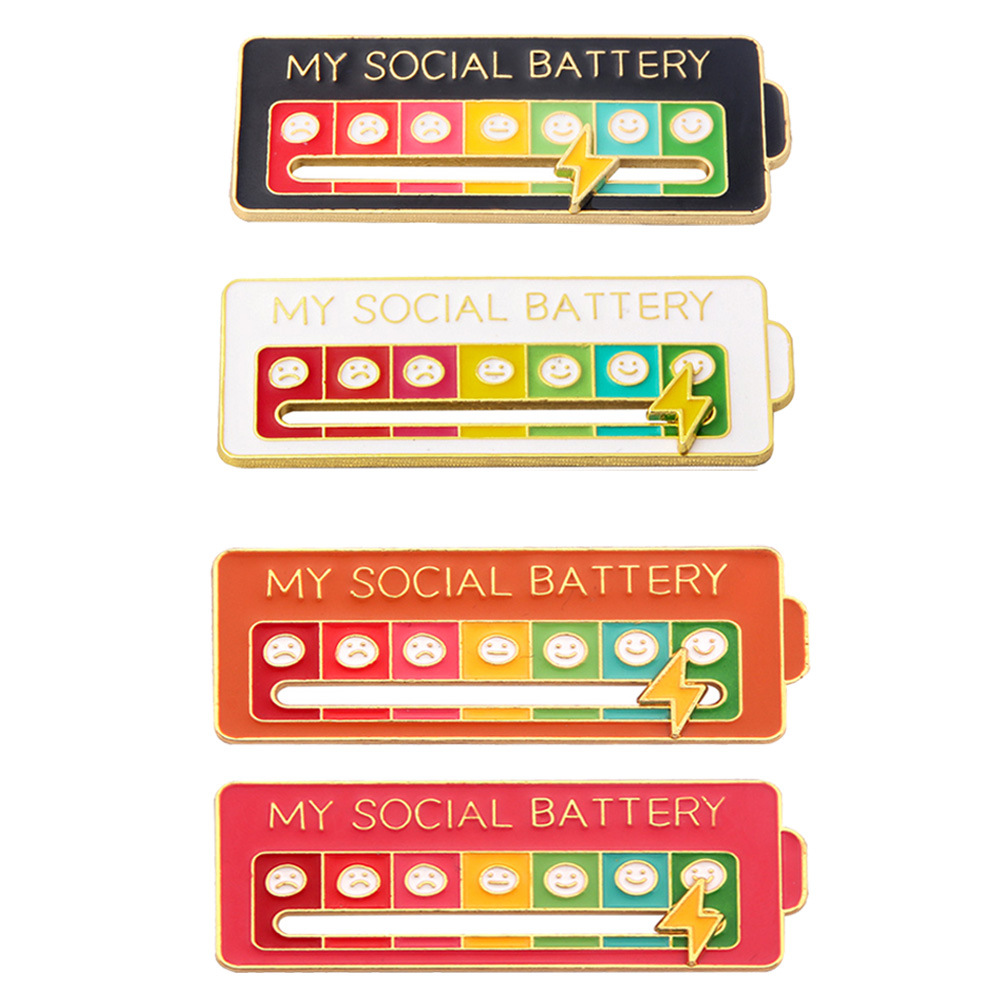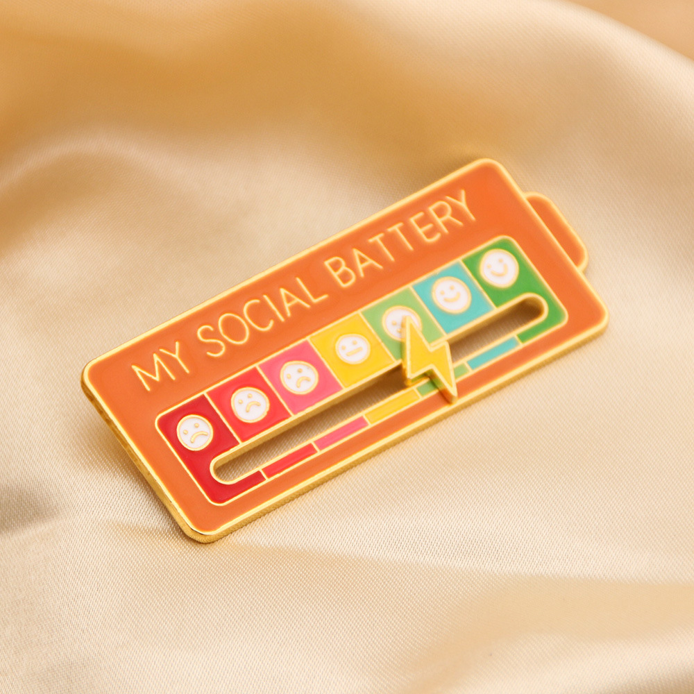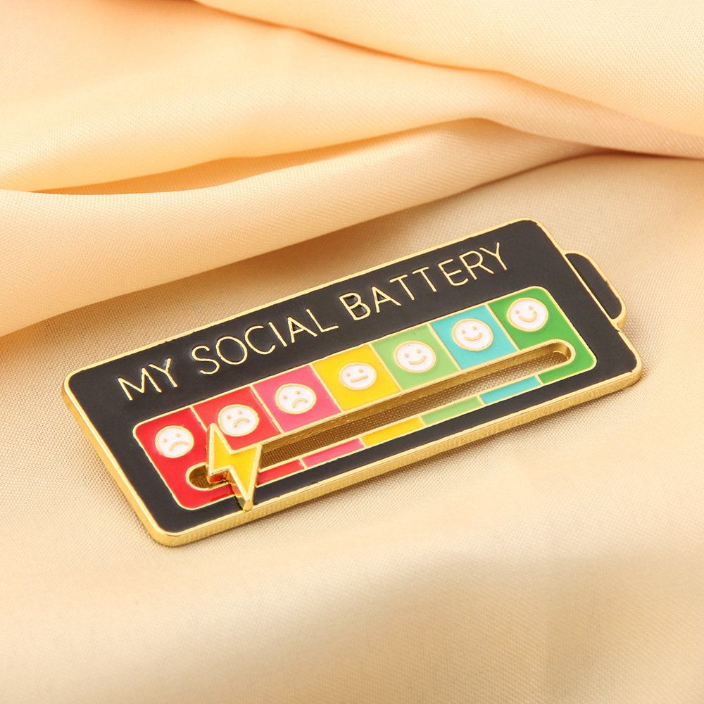 My Social BATTERY Enamel Pin MOOD TRACKER Brooch Emoticon Management Badge Mood Pin Removable Lightning Cloud Battery Lapel Pin Wholesale