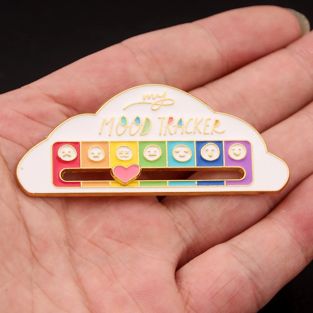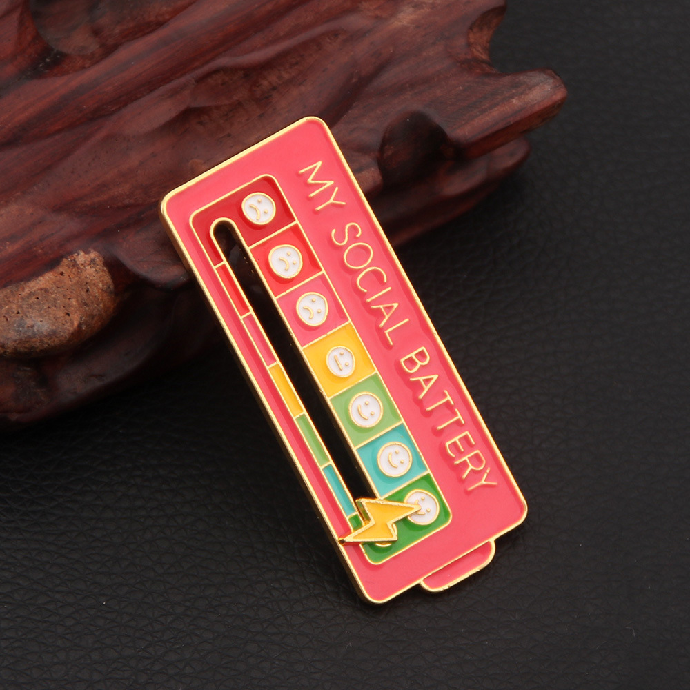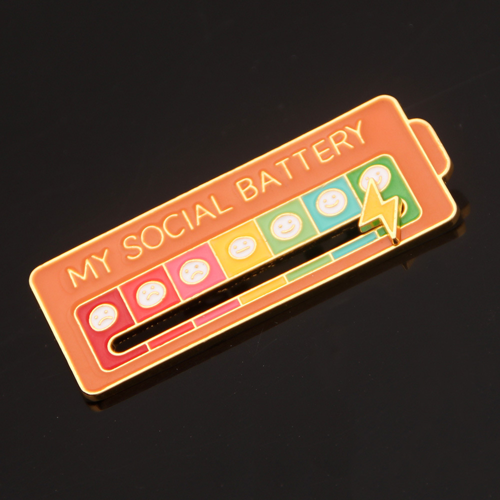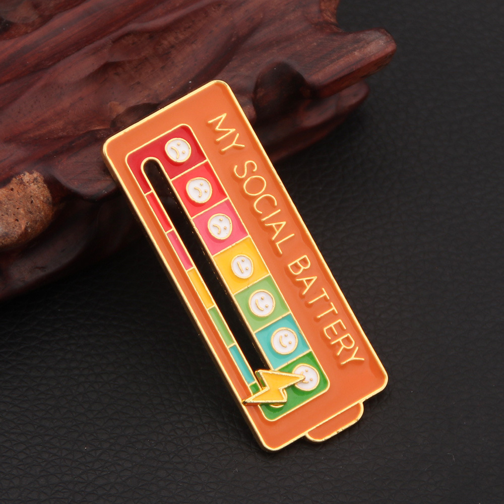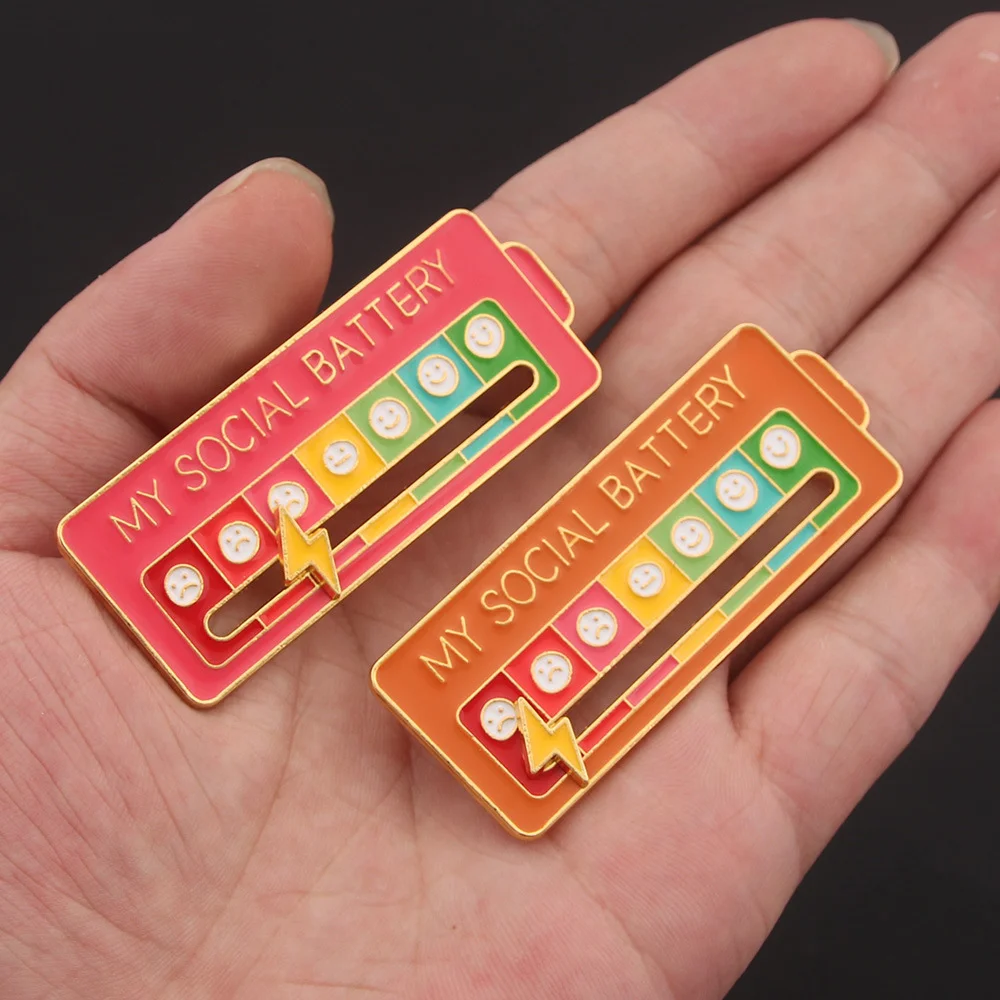 My Social BATTERY Enamel Pin MOOD TRACKER Brooch Emoticon Management Badge Mood Pin Removable Lightning Cloud Battery Lapel Pin Wholesale