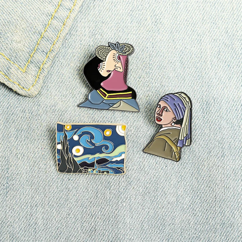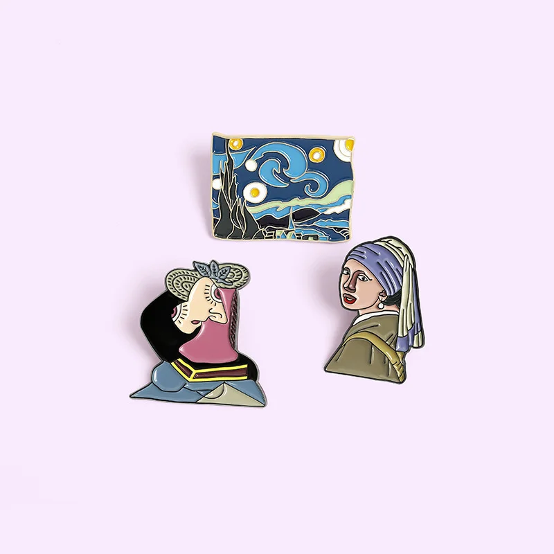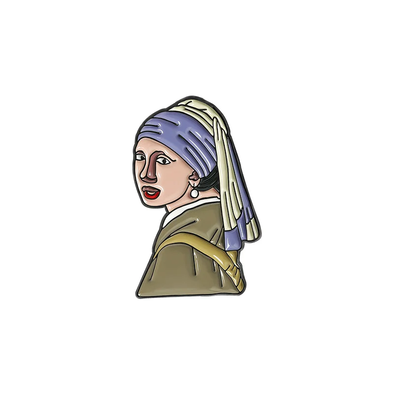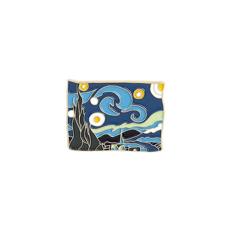 New style hot selling girl with pearl earrings Star Moon Night oil painting brooch drop oil badge wholesale