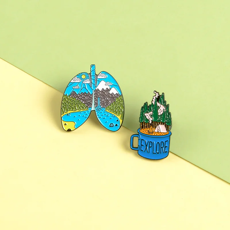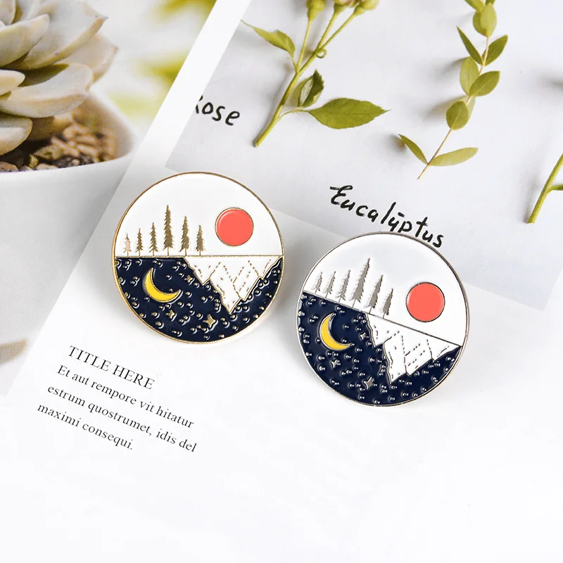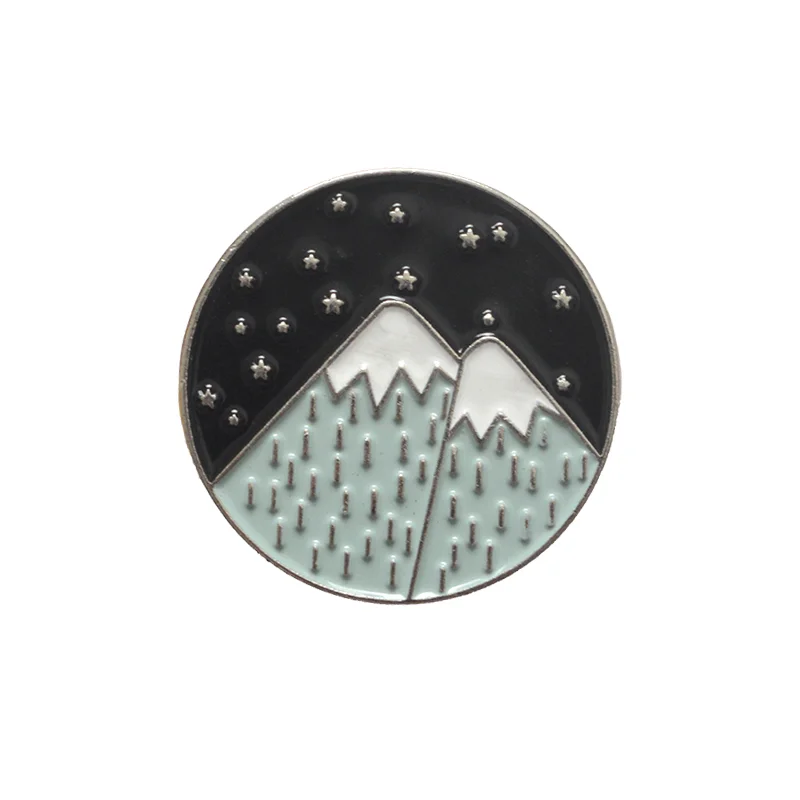 Outdoors Mountain Starry Night Enamel Pin Custom Wild Camping Hiking Brooches Bag Clothes Lapel Adventure Badge Jewelry Gift