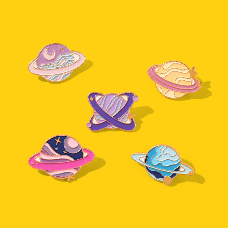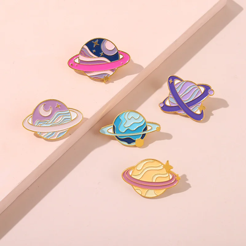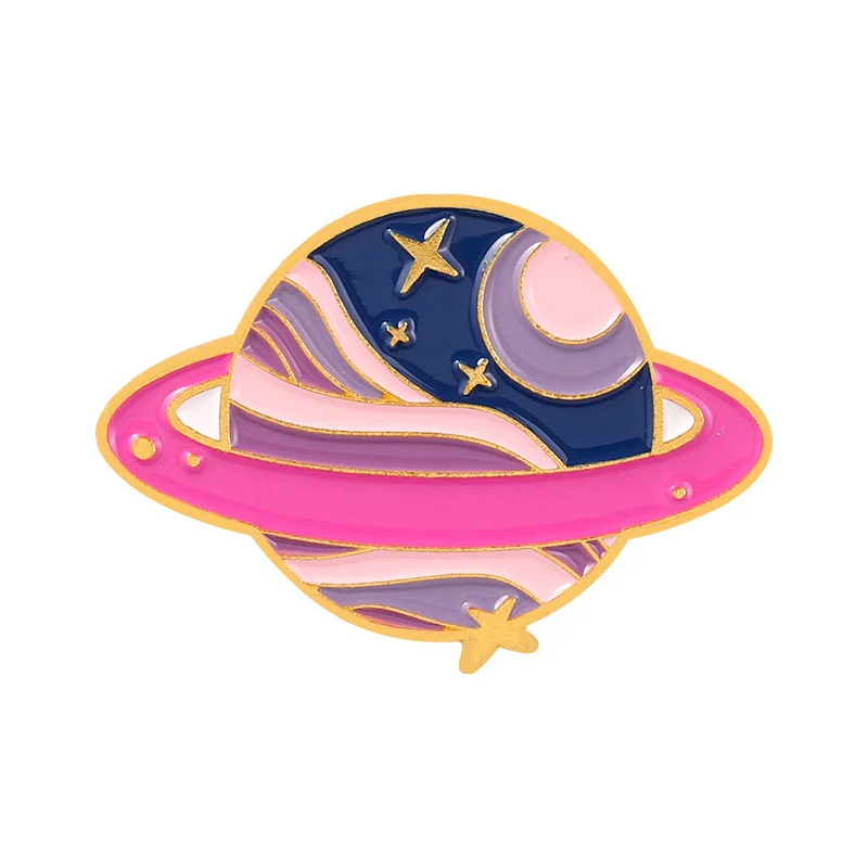 Planet Brooch Star Purple Pink Galaxy Space Enamel Metal Badge Accessory Bag Round Scarf Buckle Uniform Collar Pin